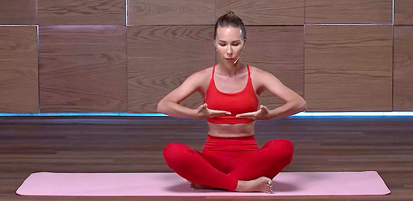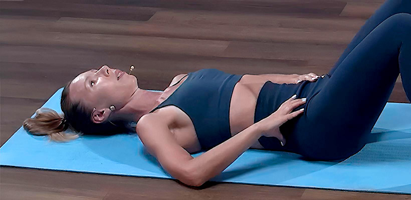 Тонкий коврик для йоги или пилатеса. Он должен хорошо фиксироваться на полу и не деформироваться при нагрузках.