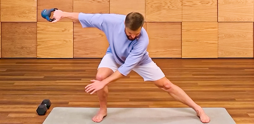 Тонкий коврик для йоги или пилатеса. Он должен хорошо фиксироваться на полу и не деформироваться при нагрузках.