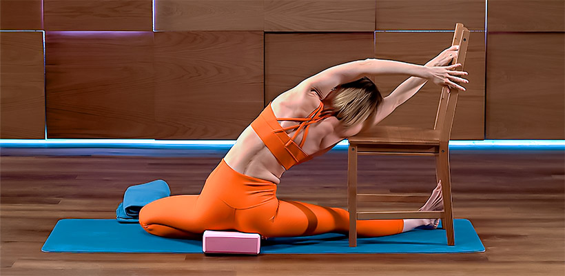 Тонкий коврик для йоги или пилатеса. Он должен хорошо фиксироваться на полу и не деформироваться при нагрузках.