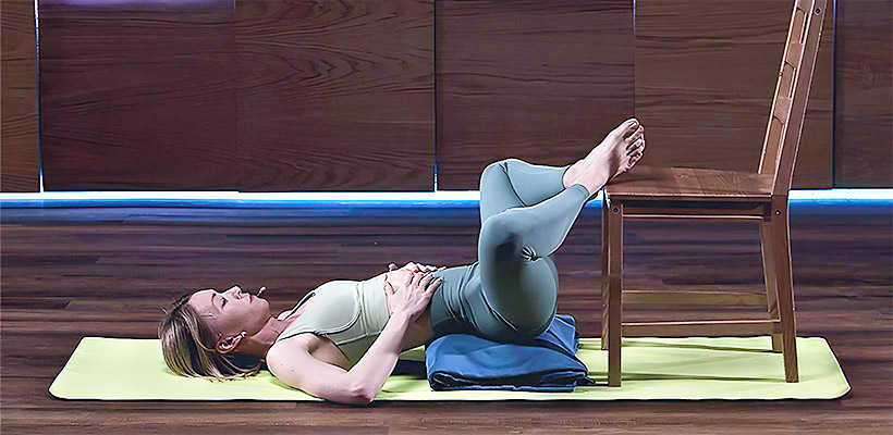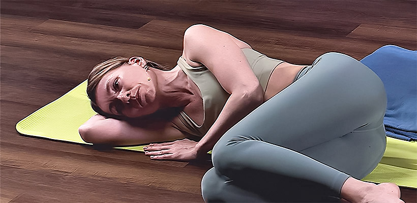Тонкий коврик для йоги или пилатеса. Он должен хорошо фиксироваться на полу и не деформироваться при нагрузках.