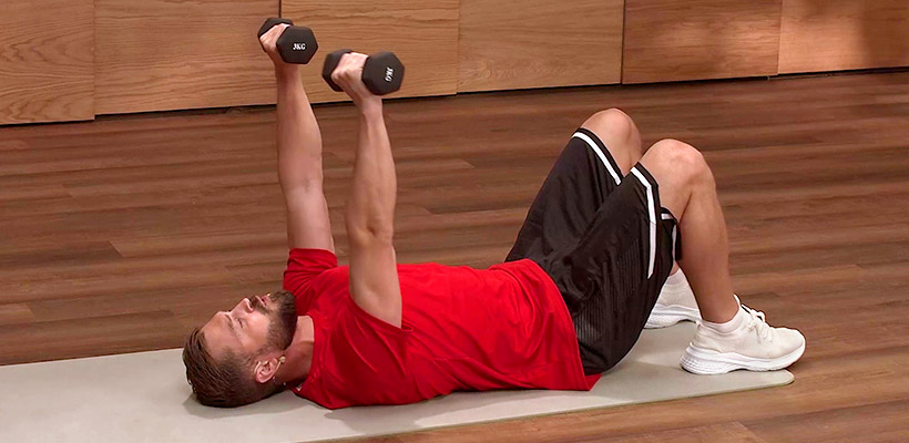 Гантели весом 3 кг. Можно заменить бутылками с водой или другими предметами схожего веса.