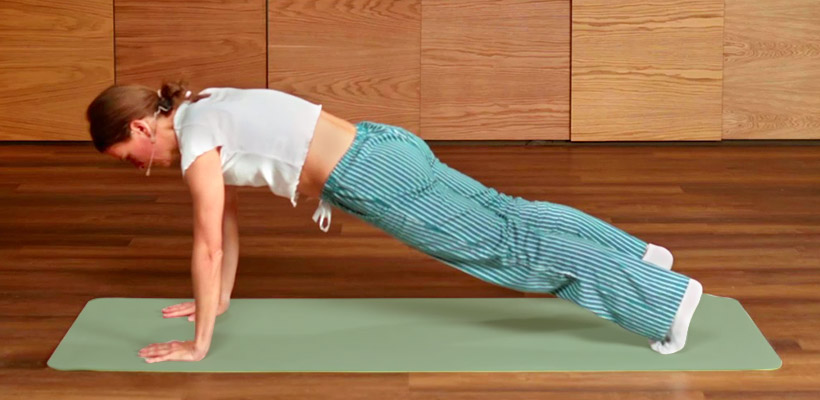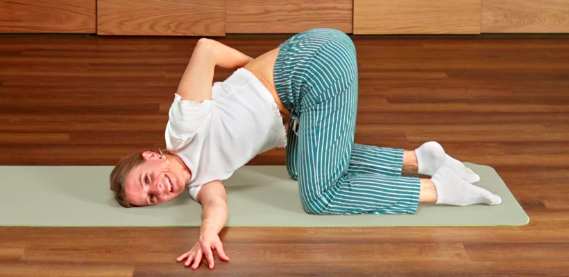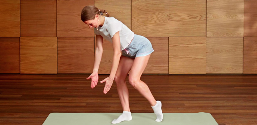 Тонкий коврик для йоги или пилатеса. Он должен хорошо фиксироваться на полу и не деформироваться при нагрузках.