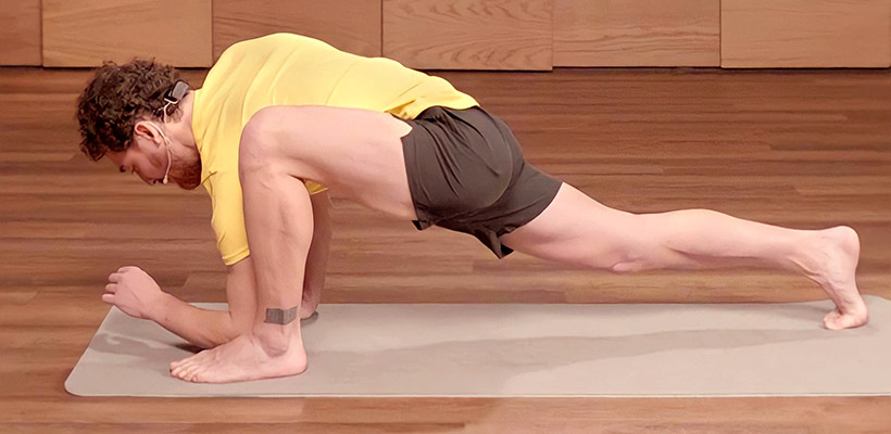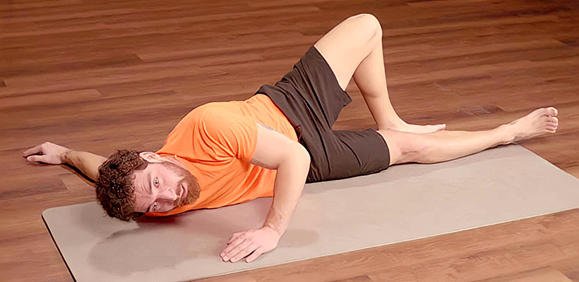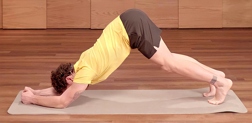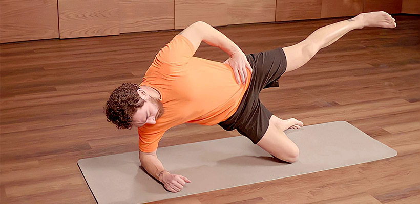 Тонкий коврик для йоги или пилатеса. Он должен хорошо фиксироваться на полу и не деформироваться при нагрузках.
